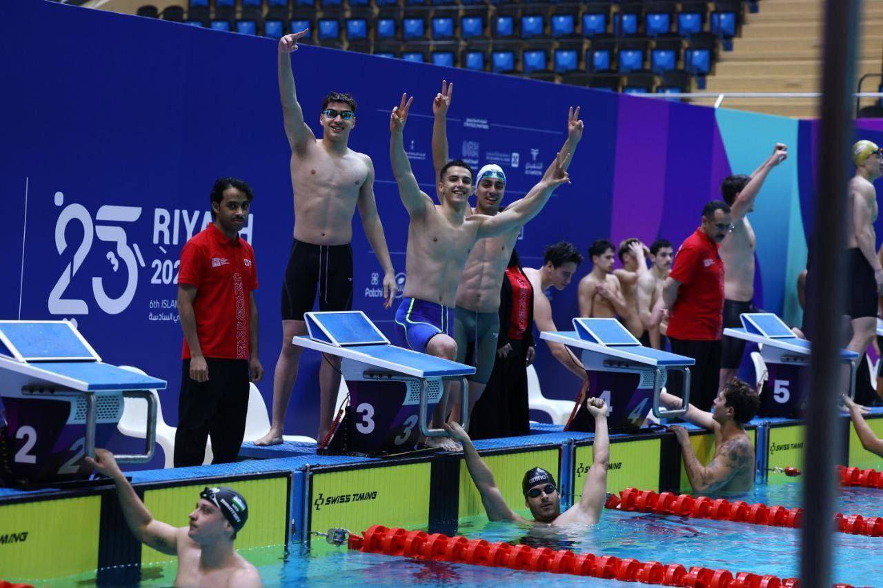 به گزارش میدان، در دومین روز از مسابقات شنای ششمین دوره بازیهای همبستگی کشورهای اسلامی در ریاض، در استخر مجموعه المپیک شاهزاده فیصل بن فهد، تیم ۴ در ۲۰۰ متر آزاد تیمی ایران متشکل از محمد قاسمی، محمد مهدی غلامی، علی رشید پور و متین سهران با زمان ۷ دقیقه و ۳۴ ثانیه و ۱۹ صدم ثانیه به مقام سوم و مدال برنز رسیدند.